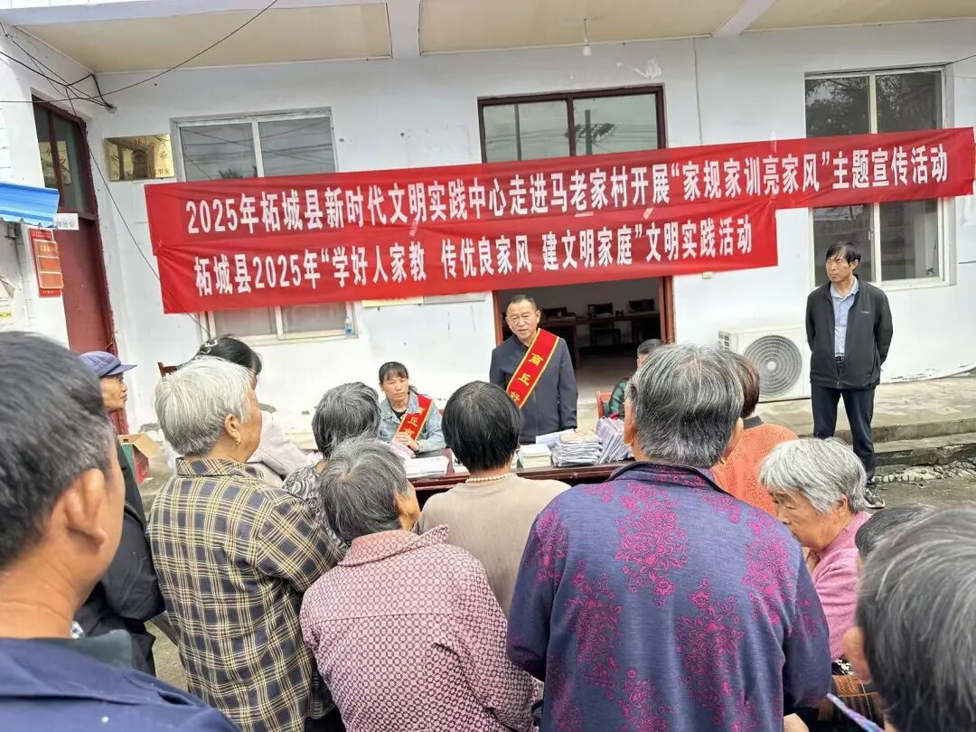 家风如春雨,润物细无声;家训似灯塔,指引前行路。为深入弘扬中华优秀传统家文化,推动社会主义核心价值观在家庭落地生根,近日,柘城县新时代文明实践中心走进马集乡马老家村,开展“家规家训亮家风”主题宣讲活动,将“学好人家教 传优良家风 建文明家庭”理念传递给村民 。
