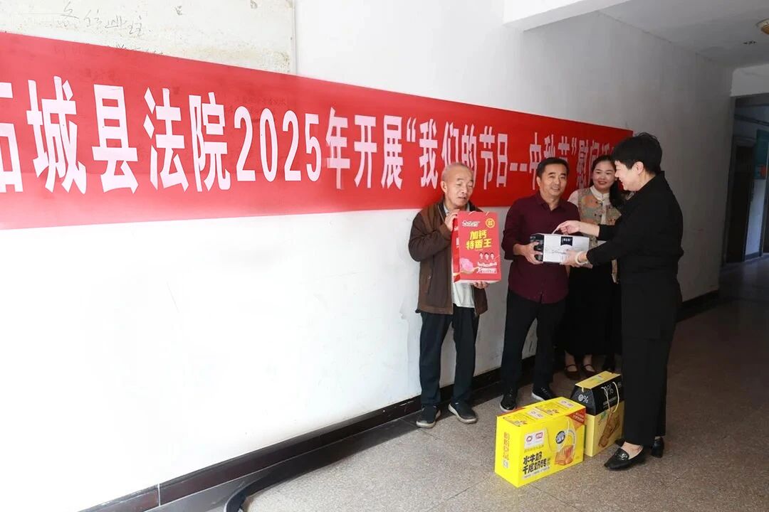 柘城县法院开展“我们的节日·中秋节”慰问活动,干警们走访困难群众、退休老干部家庭,送上节日慰问品与祝福,详细询问生活需求,倾听意见建议,在节日氛围中传递司法温度,拉近与群众的距离。