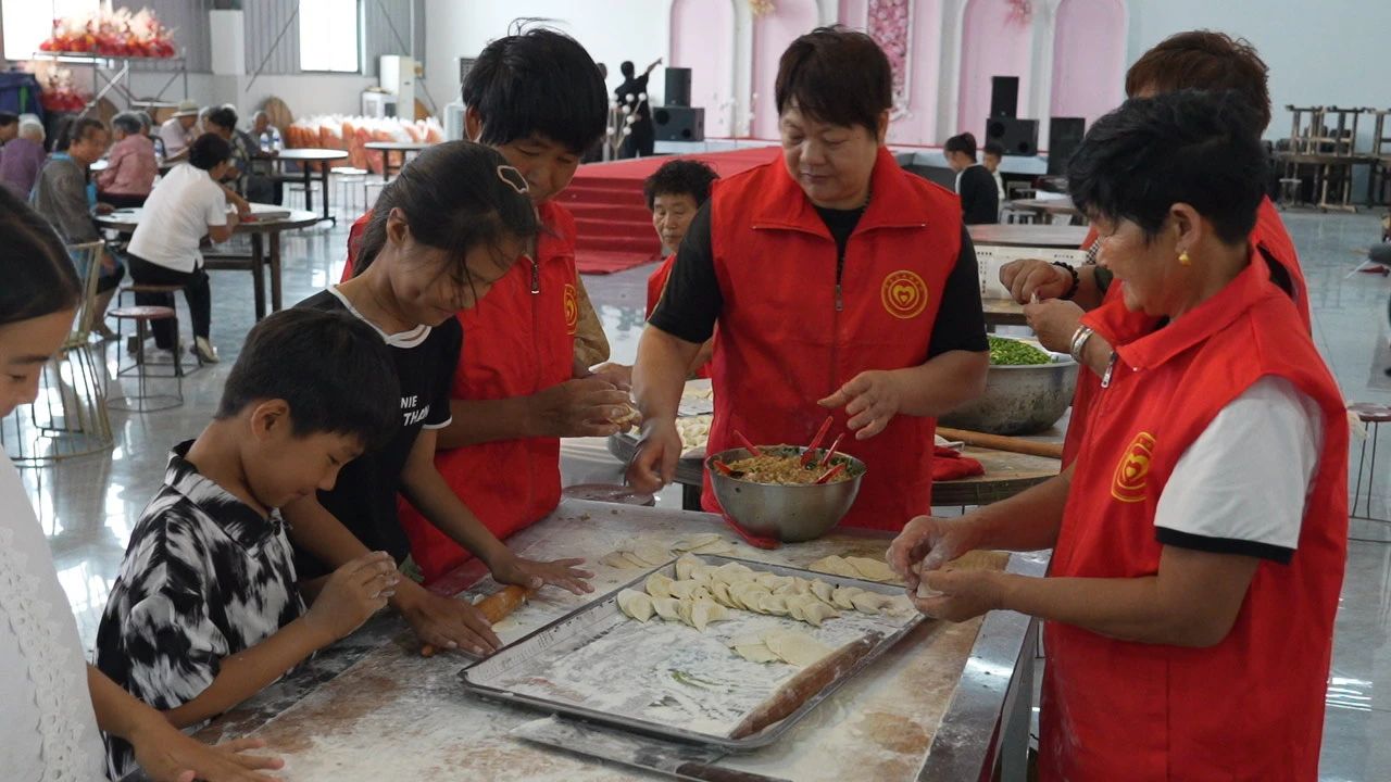 中午时分,热腾腾的饺子出锅,香气四溢。70岁以上的老人们围坐在餐桌前,志愿者们将一碗碗饺子端到老人面前,还贴心地为他们盛汤、递纸巾。“这饺子香,心里更暖!”82岁的刘爷爷捧着饺子感慨道,“村里总惦记着我们,生活在这儿太幸福了!”志愿者们穿梭在席间,与老人们亲切交谈,倾听他们的故事,食堂里暖意融融。