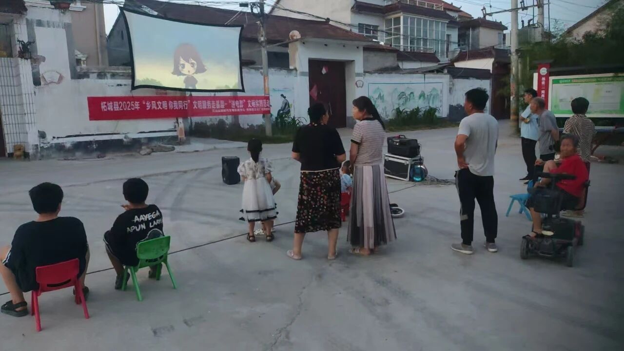 为进一步丰富农村群众精神文化生活,推动乡风文明建设,近日,由柘城县新时代文明实践中心、柘城县文化广电旅游局联合举办的2025年“乡风文明 你我同行”文明服务走基层——“送电影”文明实践活动在张桥镇赵楼村开展,精心挑选了兼具教育意义与娱乐性的影片,为当地村民送上了一场精彩的文化盛宴。