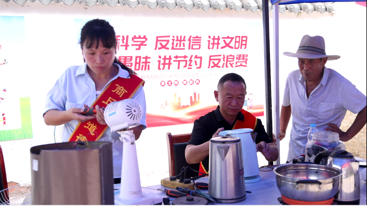金亮家电的维修师傅们摆起“便民维修台”,免费为村民检修电扇、电饭煲等家用小电器,耐心解答使用中的问题,让村民省心又省钱。
