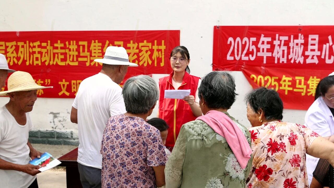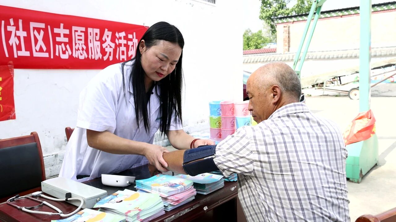 马集乡卫生院的医护人员为村民提供免费测血压、查血糖、健康咨询等服务,针对老年人常见慢性病给出调理建议,并发放健康科普资料。