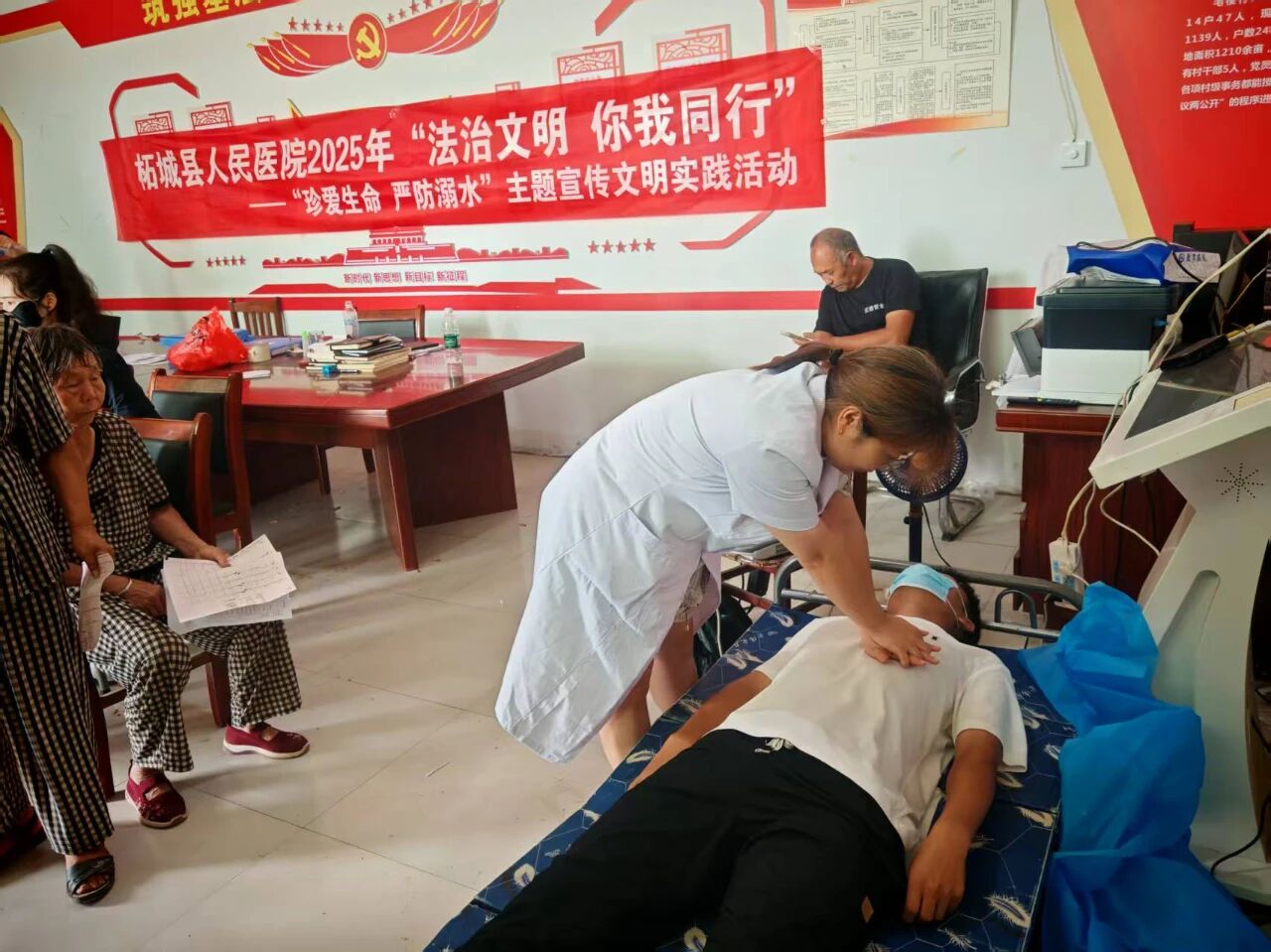 近日,为增强群众防溺水安全意识,有效预防溺水事故发生,柘城县人民医院组织开展了“法治文明 你我同行——珍爱生命 严防溺水”主题宣传文明实践活动,为生命安全保驾护航。