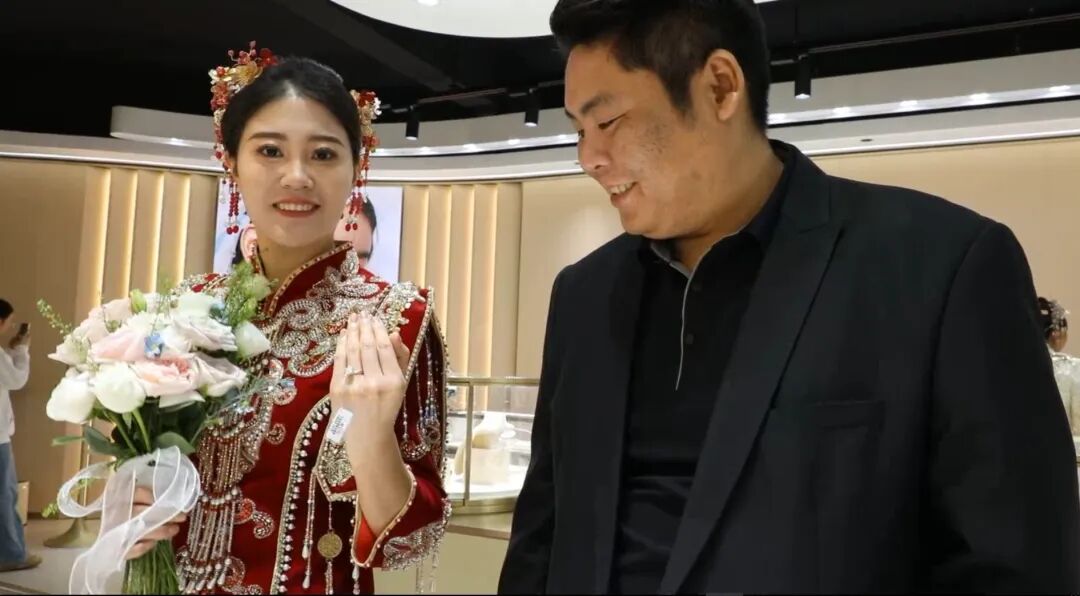仪式结束后,新人们有序乘车,沿柘城钻石工业游路线前往钻石广场等地打卡留念。沿途群众纷纷驻足,用掌声与笑容送上真挚祝福;在力量钻石展厅,新人深入了解家乡特色产业的发展成就,部分新人还精心选购饰品,在感受城市发展脉动的同时,为这场特殊婚礼留下更多珍贵回忆。